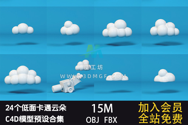 魔工坊 植物/花树/草地 24个低面卡通云朵C4D模型预设合集 https://3dmgf.com/172.html