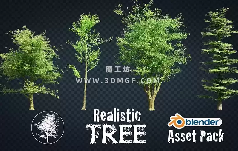 包含几个高精度的大树植物3D模型资产,Blender格式,包含贴图材质