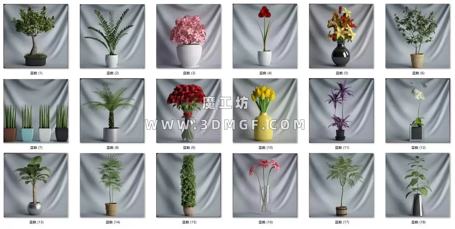 魔工坊 植物/花树/草地 魔工坊-18个鲜花花瓶盆栽C4D模型带贴图 https://3dmgf.com/2416.html