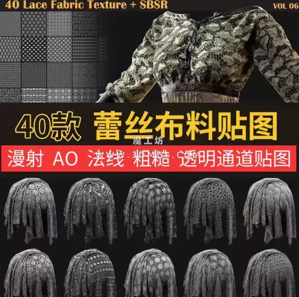 魔工坊 布料/皮革 第二卷-SP蕾丝面料花边sbsar材质球PBR无缝贴图纹理素材C4D KS maya max https://3dmgf.com/2714.html