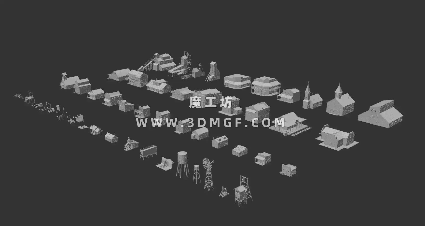 魔工坊 户外/城市/建筑 Kitbash3D系列-狂野西部风格乡村木屋3D模型 – Wild West https://3dmgf.com/3052.html