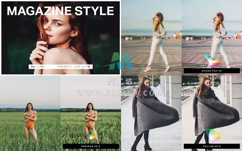 经典而别致。这 50 个杂志风格的 LR 预设和 LUT 将立即通过胶片色调和色彩增强您的摄影效果。