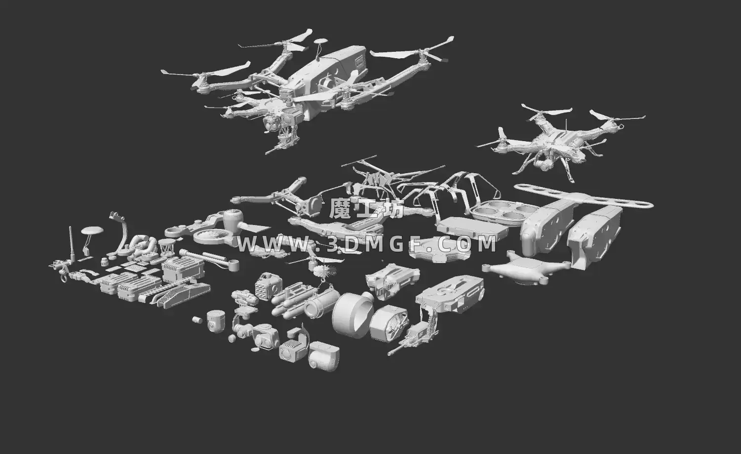 魔工坊 数码/电器/设备 Kitbash3D系列-交通工具:无人机 3d模型-Vehicles:Drones https://3dmgf.com/3154.html
