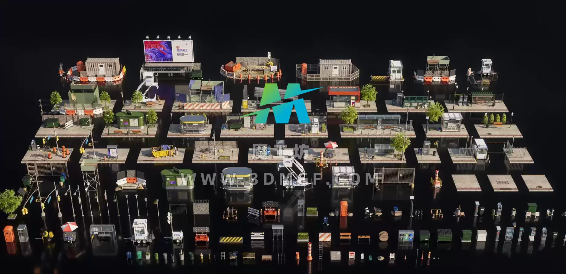 魔工坊 户外/城市/建筑 Kitbash3D系列-城市街道 KB3D-city street https://3dmgf.com/3215.html
