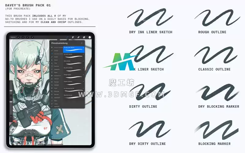 魔工坊 Procreate笔刷 Davey专业漫画勾线素描起草稿Procreate笔刷干墨水纹理噪点插画笔 https://3dmgf.com/3709.html