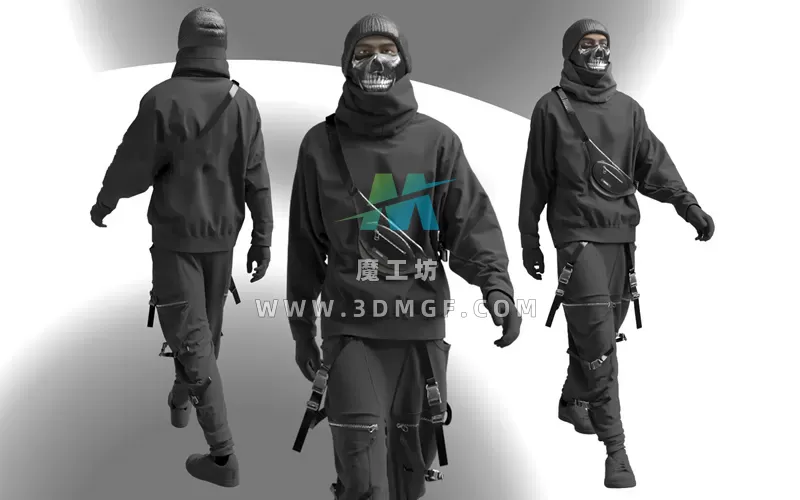 1款MD服装休闲上衣长裤面罩帽子套装ZPRJ模型打版源文件3D服装
