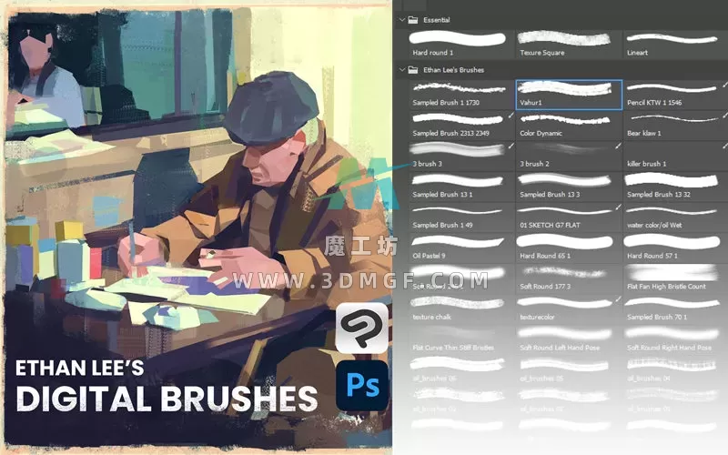 魔工坊 PS笔刷 40款Ethan Lee插画原画厚涂勾线动漫绘画PS笔刷ABR格式设计素材 https://3dmgf.com/3873.html