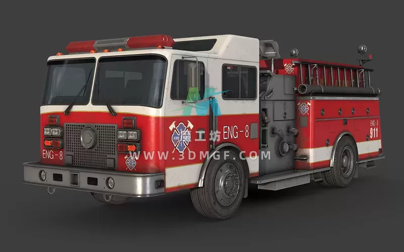 魔工坊 交通/车船/飞机 1款低多边形老旧消防车救援车辆卡车3D模型GLTF格式带2K纹理贴图 https://3dmgf.com/3875.html