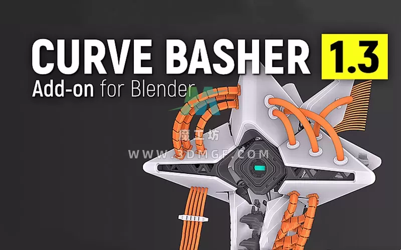 Curve Basher插件在Blender制作科幻模型方面有很多作用,包括多种预设好的电缆曲线模型可以直接生成实用,自己也可以控制调节