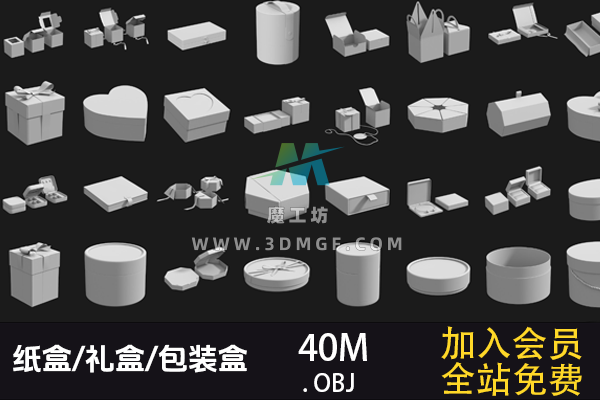 魔工坊 模型工程 97款OBJ单体模型纸盒/礼盒/包装盒 3D模型 https://3dmgf.com/427.html