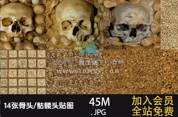 魔工坊 贴图纹理 14张骷髅头/骨头高清大图 贴图 https://3dmgf.com/467.html