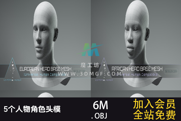 魔工坊 人物/动物/食物 5个OBJ单体模型人物角色头模 3D模型 https://3dmgf.com/728.html
