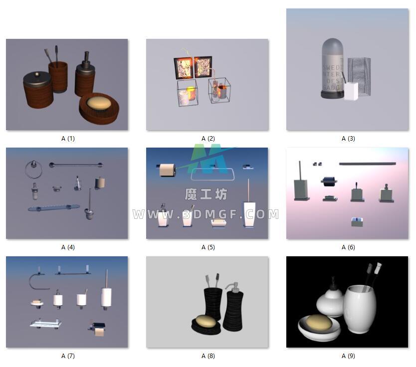 魔工坊 厨房/浴室/电器 9个 卫浴 牙刷 毛巾 洗手液 https://3dmgf.com/7709.html