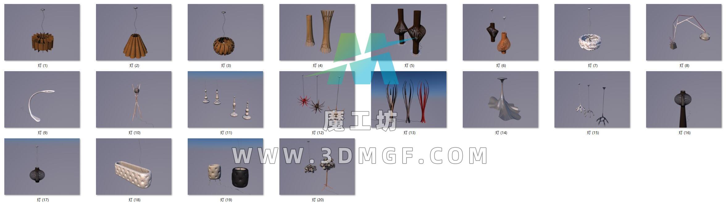 魔工坊 灯具/装饰/摆件 20个室内艺术灯具C4D模型合集含材质贴图 https://3dmgf.com/7730.html