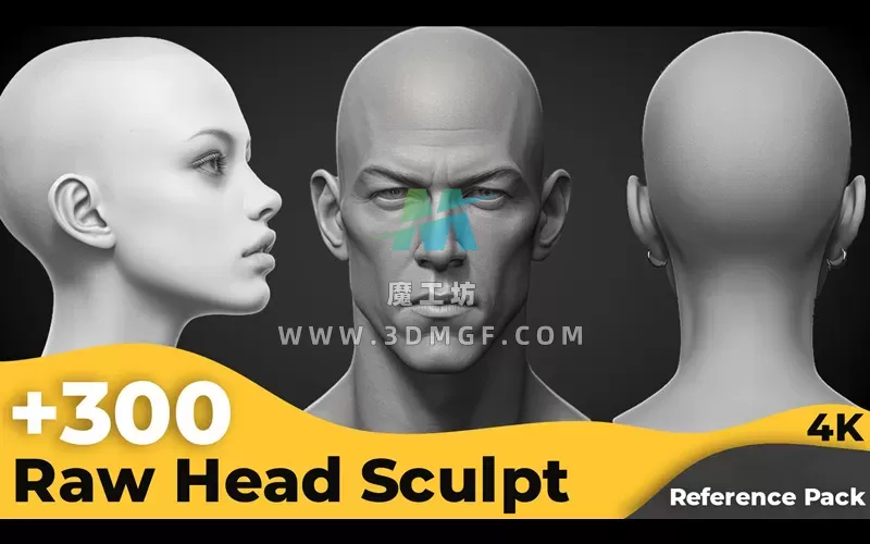 300+张风格化男女原始头部雕塑参考图片素材人工智能逼真渲染照片