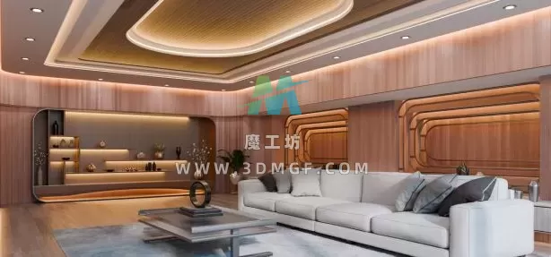 现代木质客厅场景资产3D模型,Blender格式,包含贴图材质,要求Blender 4.0或者更高版本